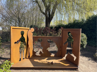 Dieses Mahnmal entstand aus den „Gegenstücken“ des bereits im Januar 2024 an der Brecht-Schule eingeweihten Mahnmals. Nachdem die mobile Ausstellung der Vereinigung Kinder vom Bullenhuser Damm e.V. im Jahr 2022 an der Brecht-Schule zu Gast war und die Vielfaltgruppe der Schule in einem Workshop zu Peer-Guides ausgebildet wurden, hatten die Schüler:innen den Wunsch, an ihrer Schule einen bleibenden Gedenkort zu schaffen, um an die 20 jüdischen Kinder zu erinnern.